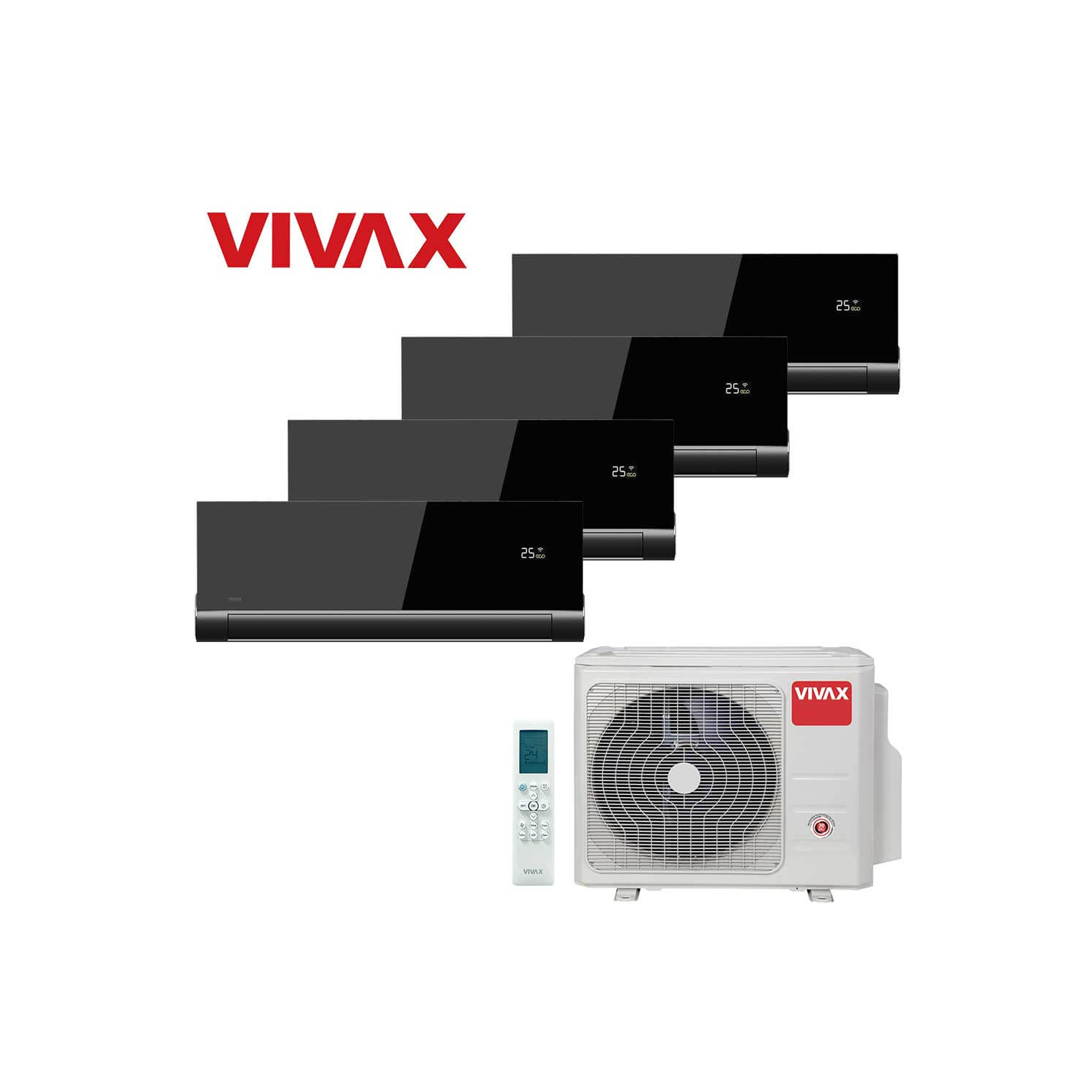 Aer conditionat multisplit Vivax 28000 BTU, 4 unitati V-design, 9+9+9+9 BTU, Grey Mirror